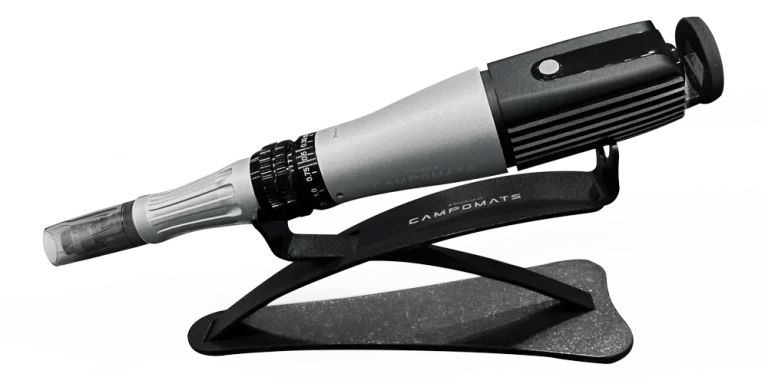 Sistema de doble calibración de profundidad que permite una precisión extrema en la penetración de agujas, adaptándose a cada tipo de piel y tratamiento.
